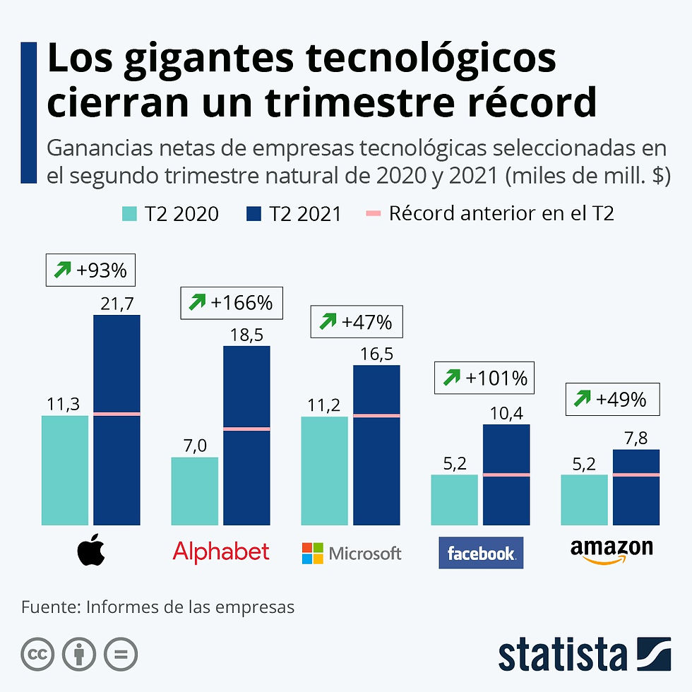 Ganancias netas de las grandes tecnológicas en el segundo trimestre de 2020 y 2021. Fuente: Statista